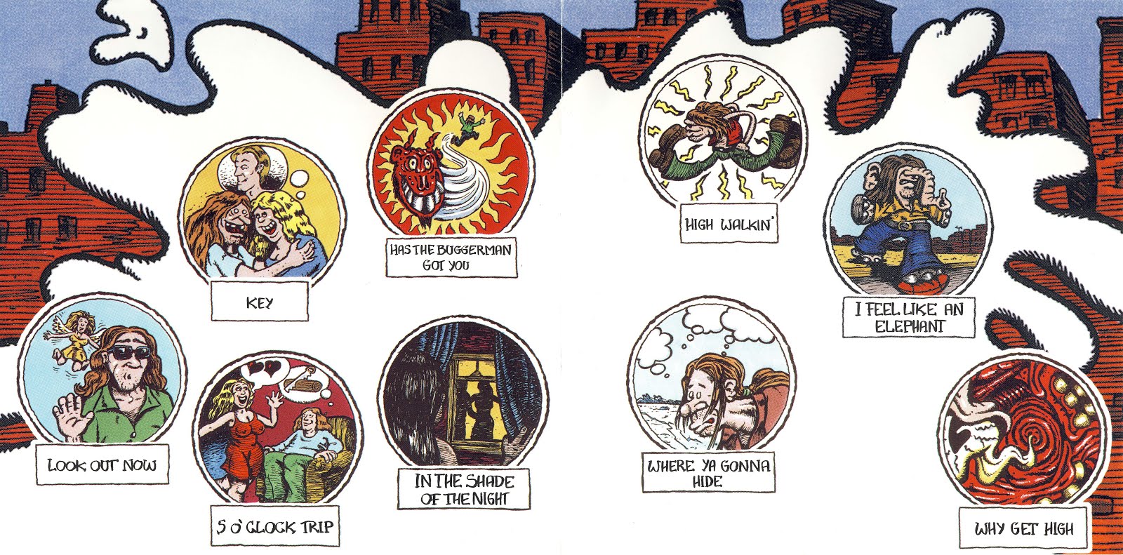 Las drogas son algo que puede ser bien o mal visto por la gente, sin embargo el grupo en lugar de cantar sobre colores fantásticos y arcoíris, hablan sobre los efectos de las drogas duras, del declive personal generado por estas y de pasar drogado todo el tiempo debido a aquellas horribles visiones que tuvieron en los mal viajes, canciones como High All The Time o Amphetamine Gazelle son auténticos testimonios de ello.